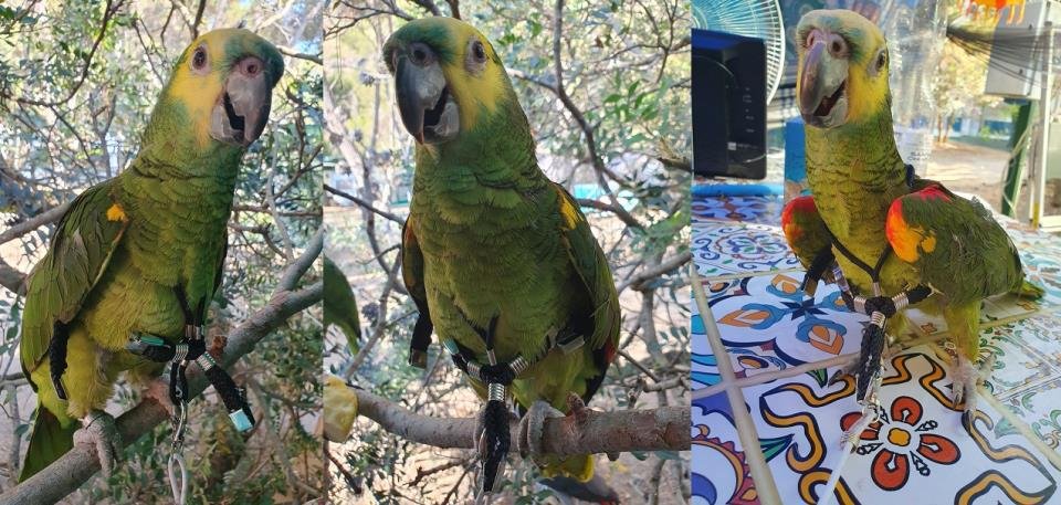 Tamaño ajustable, apto para PERIQUITOS Y AMAZONAS, ……… hebillas de liberación rápida en plástico o metal según lo que diga el título del artículo, el único donde puedes ajustar tanto el cuello como las bandas bajo las alas, Son formidables, tengo periquitos grises africanos de Amazonas y los creé como conozco bien a los loros, son los mejores del mercado. Ojo: el loro siempre debe estar entrenado para no picotear el arnés, hemos creado un trozo de alambre que sobresale delante del pico específicamente, si picotea que no pasa nada, pero hay que regañarlo, decirle: no, no es lo suyo, ellos lo entienden todo, nunca hay que dejarlo solo si lleva el arnés. El arnés sirve para sacarlo de forma segura. Si tu loro no lo soporta, puedes comprar nuestra correa elástica universal para patas, que se pone y se quita en un segundo. No se permite usar la correa atada a la percha, pero sí si la usas para transportarlo.