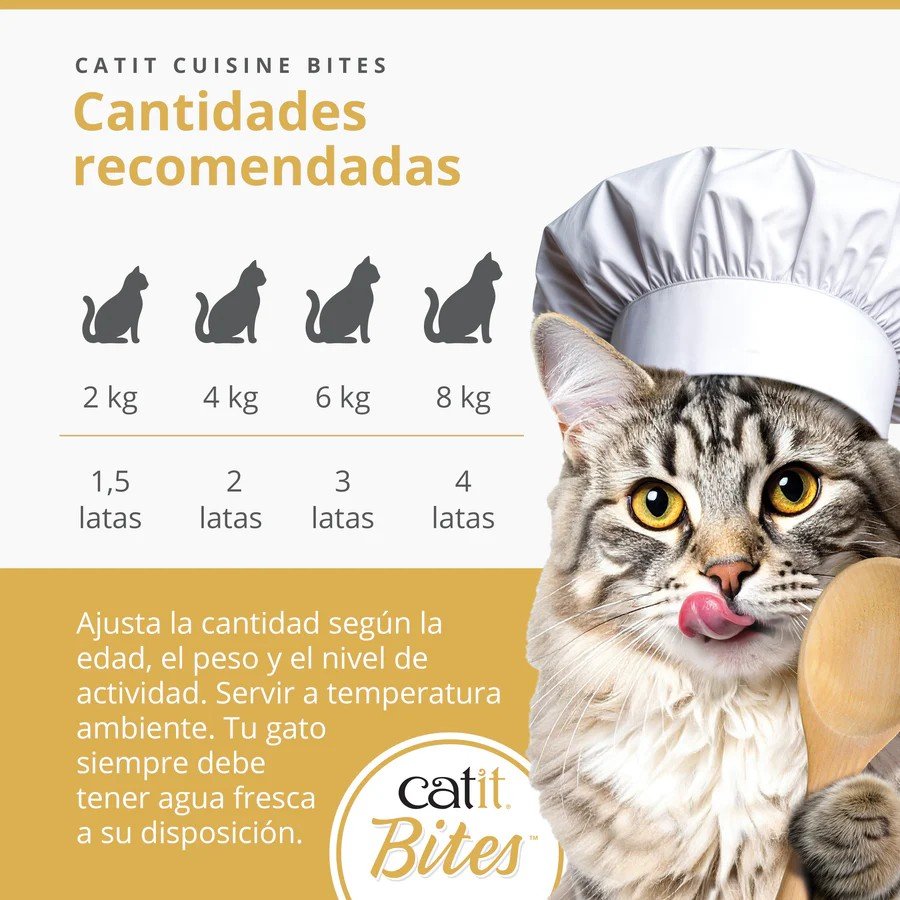 Catit Bites ofrece tiernas partes del tamaño de un bocado, perfectas para gatos que prefieren una comida más carnosa. Los bocados suaves y jugosos en una deliciosa salsa proporcionan comodidad y nutrición, ofreciendo un plato sin cereales con una textura satisfactoria que hará que tu gato quiera repetir.