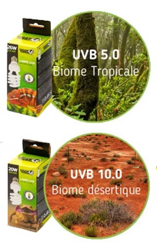 Las la´mparas UVB permiten a los reptiles producir vitamina D3 fundamental para la absorcio´n de calcio.