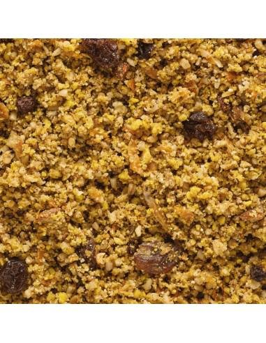 Orlux Gold patee grandes periquitos & papagayos es una pasta lista para usar para grandes periquitos, papagayos, cacatúas y guacamayos. También es una golosina muy apetecida por las aves domésticas. Este alimento tiene un alto valor nutritivo, mediante la adición de miel 100 % pura y natural. La lisina y metionina adicionalmente añadidas garantizan un óptimo crecimiento y una buena composición del plumaje. Gold patee grandes periquitos & papagayos está enriquecida con insectos secos, camarones secos, escaramujo, bayas de serbal y pasas. Este alimento tiene una estructura gruesa para una mejor ingestión. Modo de empleo: Esta Gold patee está lista para usar y se puede administrar por varios días. Sin embargo, esta pasta también se puede preparar con semillas germinadas, frutas o verduras ralladas, aunque en tal caso, es preciso refrescar diariamente la ración. La pasta de huevo debe estar disponible durante toda la temporada de cría. Fuera de este periodo, tres veces por semana. Componentes analíticos Proteína 17 % Contenido de grasa 16 % Celulosa bruta 2 % Ceniza bruta 5 % Calcio 1,30 % Fósforo 0,50 % Metionina 0,35 % Lisina 0,95 % Treonina 0,60 % Triptófano 0,20 % Cistina 0,30 % Aditivos nutricionales Vitamina A 15.600 UI/kg Vitamina D3 1.850 UI/kg Vitamina E 345 mg/kg Vitamina K 3 mg/kg Vitamina B1 7,20 mg/kg Vitamina B2 16 mg/kg Vitamina B3 20 mg/kg Vitamina B6 6 mg/kg Vitamina B12 0,03 mg/kg Vitamina C 75 mg/kg Vitamina PP 65 mg/kg Ácido fólico 1,20 mg/kg Biotina 0,20 mg/kg Cloruro de colina 1.200 mg/kg L-carnitina 75 mg/kg ?-carotena 8,50 mg/kg E1 (hierro) 50 mg/kg E2 (yodo) 2 mg/kg E4 (cobre) 10 mg/kg E5 (manganeso) 100 mg/kg E6 (zinc) 97 mg/kg E8 (selenio) 0,20 mg/kg Disponible en Fresh pack de 250 g. Fresh pack de 1 kg. y bolsas de 5 kg.