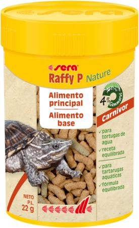 sera Raffy P Nature es el alimento principal en forma de granulado flotante elaborado conservando todas sus propiedades para reptiles carnívoros, como las tortugas acuáticas.