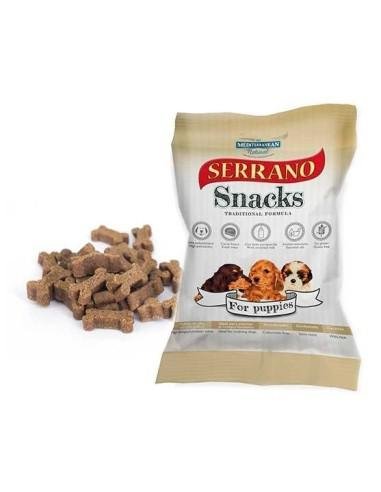 Los Serrano Snacks de MEDITERRANEAN NATURAL, delicadamente cortados en pequeñas cantidades con forma de huesito, garantizan la seguridad de la mascota, mantienen su pureza y todos los nutrientes, reflejan la dieta natural y contienen un 70 % de carne fresca (60% en “Serrano Snacks for puppies”). Elaborados con materias primas exentas de gluten. Son el snack perfecto para premiar el comportamiento de su mascota. Ideales en el adiestramiento.